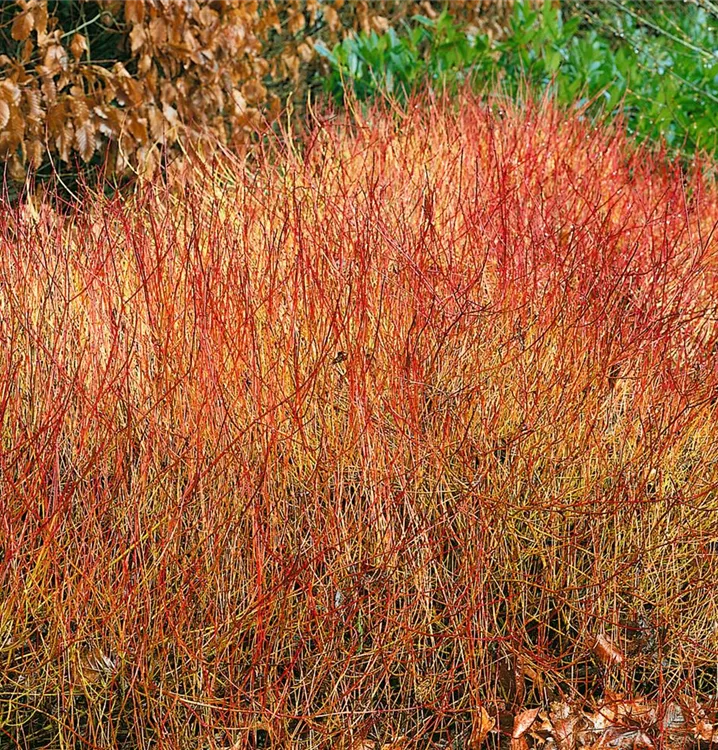 Um die intensive Rindenfärbung im Winter zu erhalten, werden im Frühling vor dem Austrieb werden alle Triebe, die älter als drei Jahre sind, entfernt. Ist der ganze Strauch veraltet und verkahlt, wird er am besten komplett 10 bis 20 cm über dem Boden gekappt.