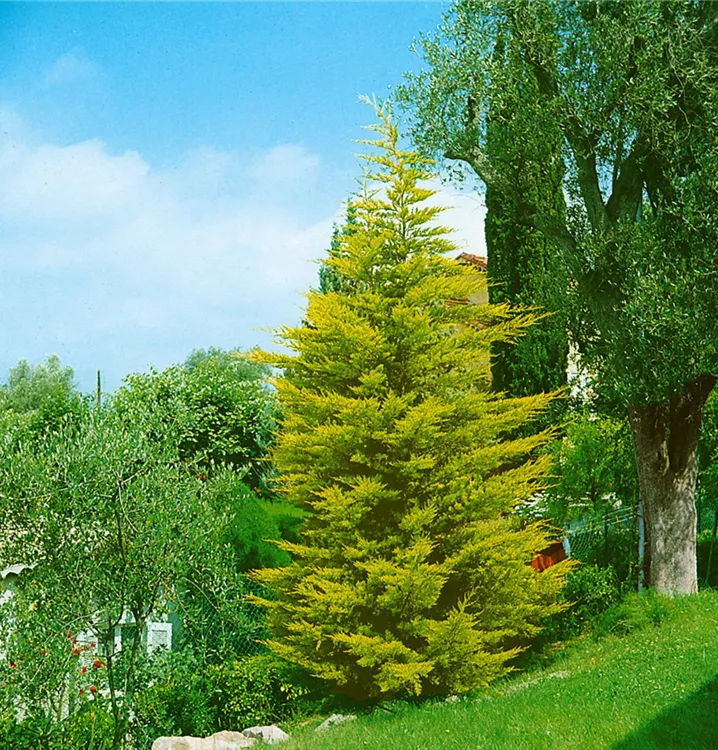 Die Monterey-Zypresse (Cupressus macrocarpa) ist ein Gehölz, welches säulenförmig wächst und gewöhnlich eine Höhe von ca. 7 m und eine Breite von ca. 5 m erreicht. Sie bevorzugt durchlässigen Boden in sonniger Lage.