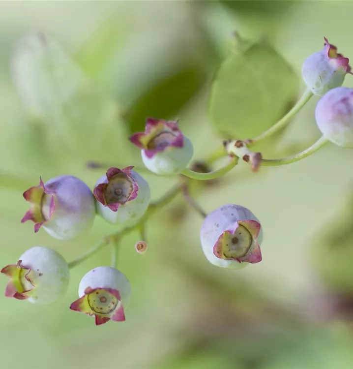 Die Amerikanische Heidelbeere (Vaccinium corymbosum) bildet blaue Beeren. Diese sind süß-säuerlich im Geschmack. Für eine ertragreiche Ernte ab Juli schaffen humoser, sandiger, feuchter bis nasser Boden und ein sonniger bis halbschattiger Standort optimale Bedingungen. Auch ihre hellrosafarbenen Blüten sind eine schöne Erscheinung.