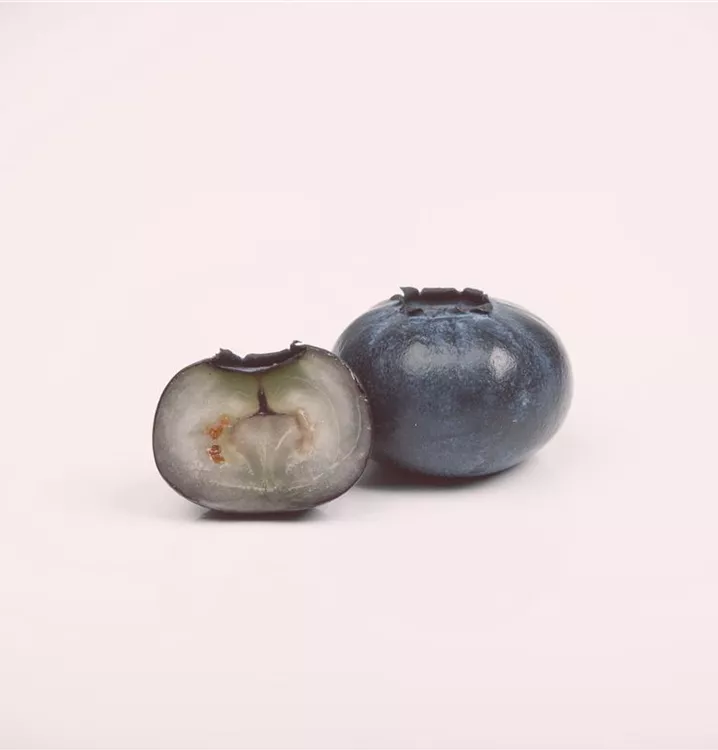 Die blauen Beeren haben einen süß-säuerlichen Geschmack. Die Beeren sind rund. Reifezeit ab Juli.
