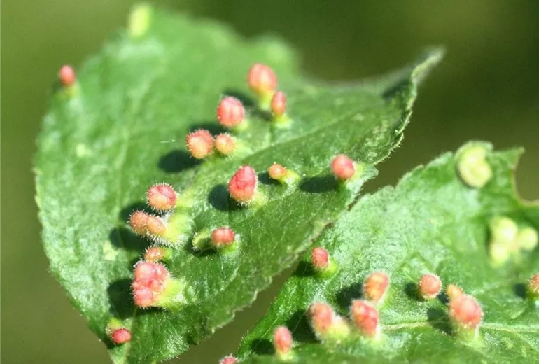 Die Gallenbildung an den jungen Blättern beunruhigt im Frühjahr viele Freizeitgärtner. Auf eine Spritzung mit Pflanzenschutzmitteln kann normalerweise verzichtet werden, da erfahrungsgemäß keine Schäden an den Früchten entstehen und die Bäume durch diese auffällige Gallenbildung nicht geschwächt werden.