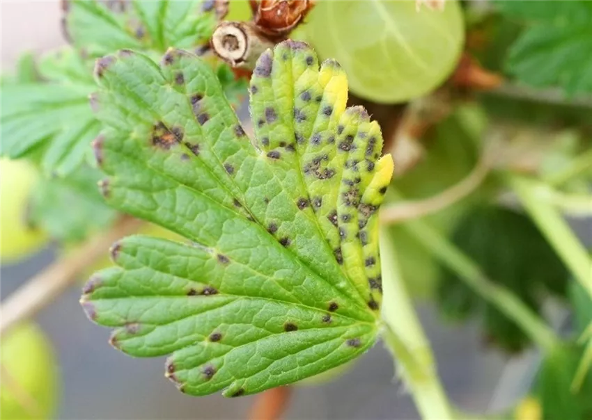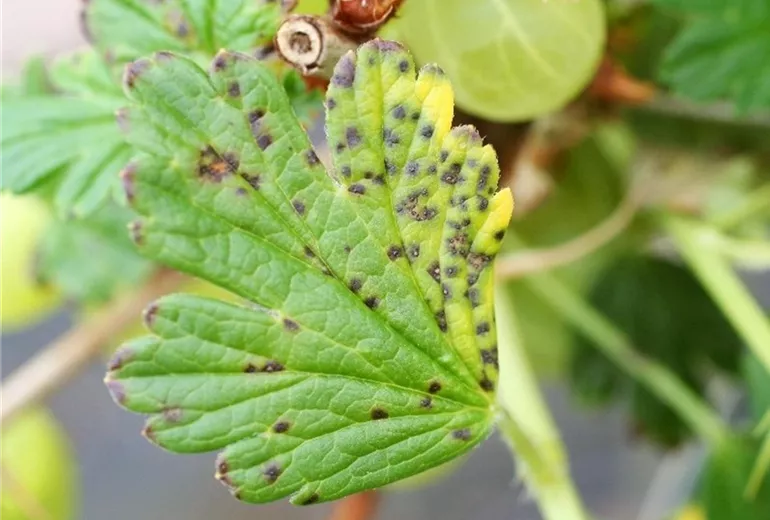 Bei feuchtem Sommerwetter zeigen die Blätter punktartige dunkle Blattflecke. Befallen werden Stachelbeeren, Rote und Weiße Johannisbeeren.