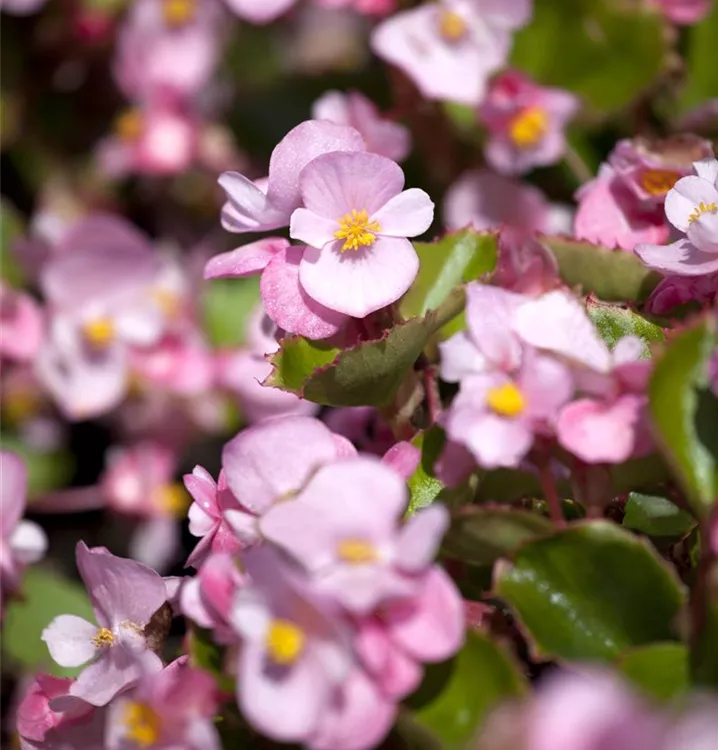 Ihre lange Blütezeit, die Zierlichkeit der Kronblätter und ihre asymmetrischen, meist eiförmigen Blätter charakterisiert die brasilianische Art Begonia semperflorens. Diese Begonien besitzen grünes bis rötliches Laub und umfassen Vertreter weißer bis roter Blütenfarbe. Ihre Blätter brechen schnell, weshalb sie auch den Namen Eis-Begonie tragen. Ihre Wuchshöhe beträgt maximal dreißig Zentimeter.