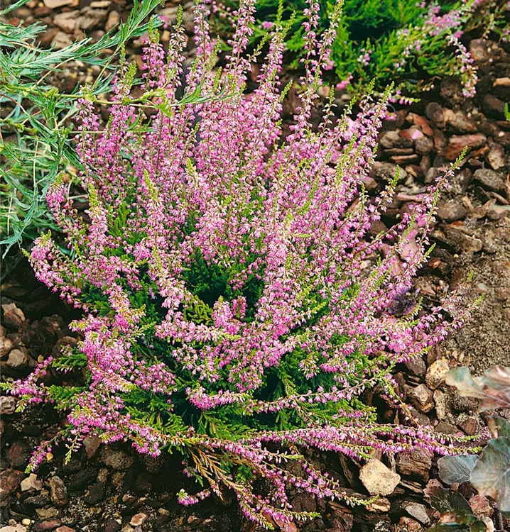 Herbstzeit ist Heidezeit. Mit der Besenheide setzen Sie Farbtupfer, wenn die letzten Herbstblumen dem nahen Winter Platz gemacht haben. Ob im Gartenbeet, auf der Terrasse oder auf dem Balkon, der immergrüne Zwerg vermag es, die Stimmung zu heben. Ein kalkarmer, durchlässiger Boden ist ein ideale Standort für die Besenheide. Die Heide blüht eifrig und ist winterhart. Im Frühling zurückgeschnitten, treibt die Pflanze bald neu aus und der nächste Herbst kann kommen.