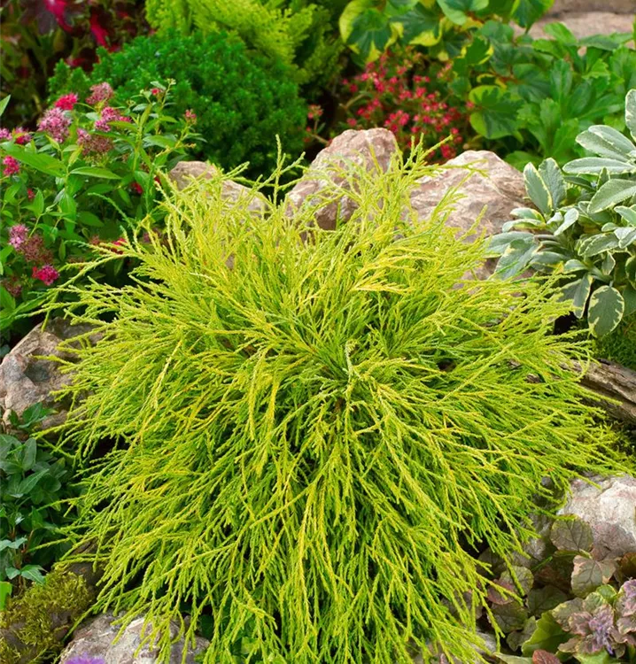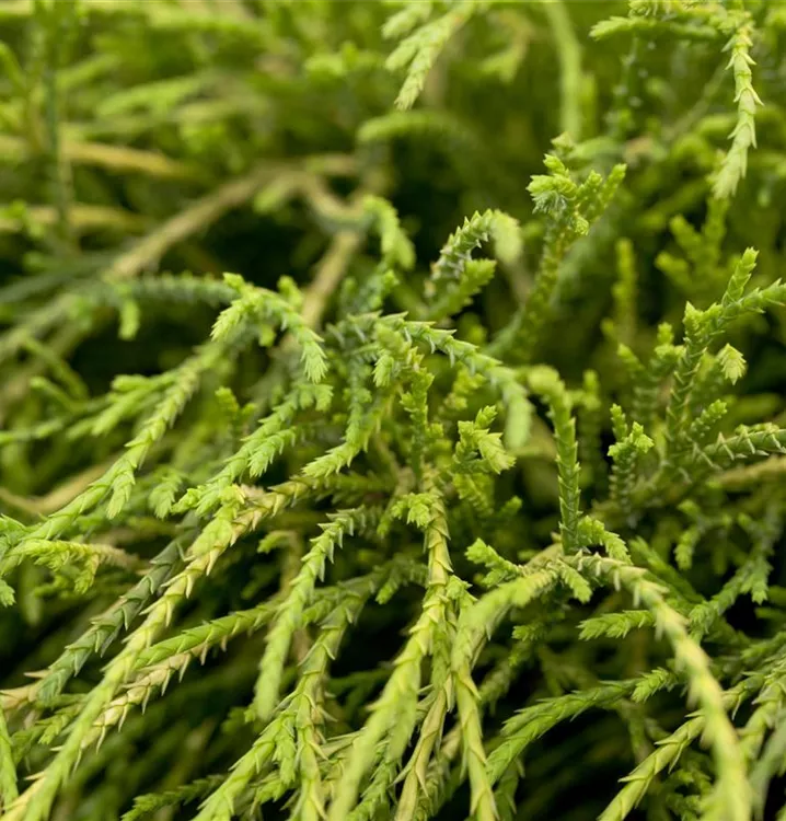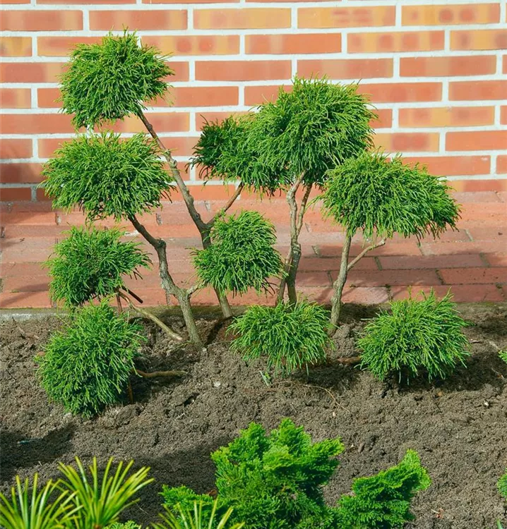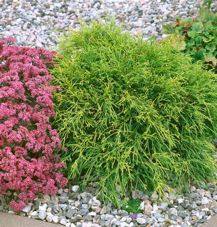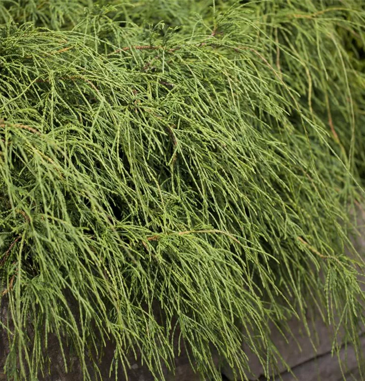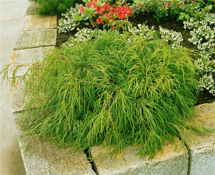 Sehr dekorativ. Die Grüne Fadenzypresse 'Filifera Nana' ist immergrün. Ihre Nadeln sind gelb-grün, weich.