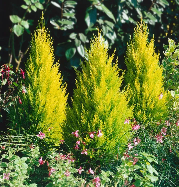 Die Monterey-Zypresse (Cupressus macrocarpa) ist ein Gehölz, welches säulenförmig wächst und gewöhnlich eine Höhe von ca. 7 m und eine Breite von ca. 5 m erreicht. Sie bevorzugt durchlässigen Boden in sonniger Lage.