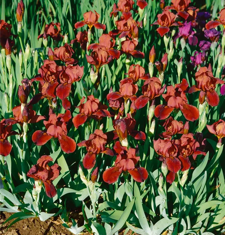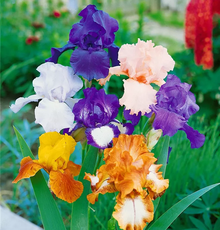 Je nach Sorte, bildet Iris x germanica Blüten in verschiedenen Farben.