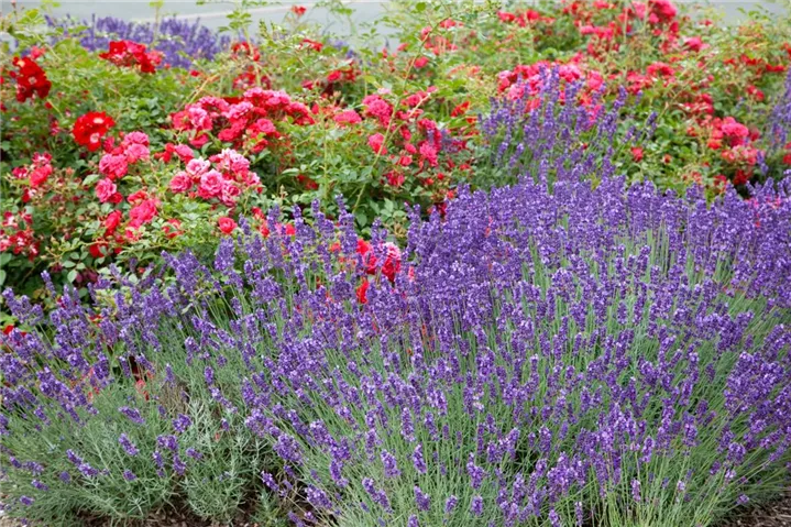 Der Bastard-Garten-Lavendel 'Grosso' setzt schöne Akzente gemeinsam mit: