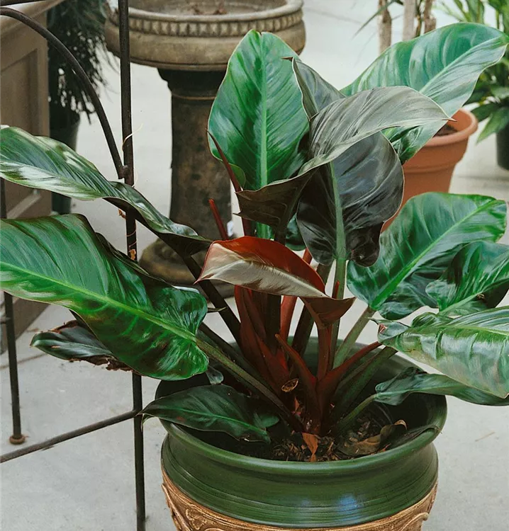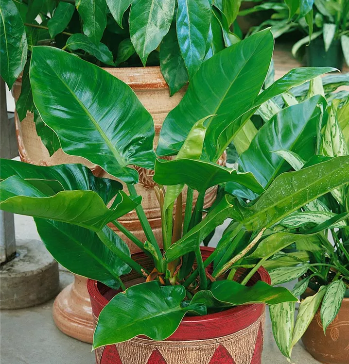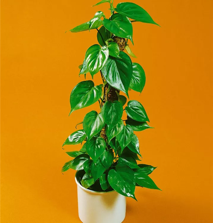 Die Blätter des Philodendrons sind dunkelgrün, herzförmig.