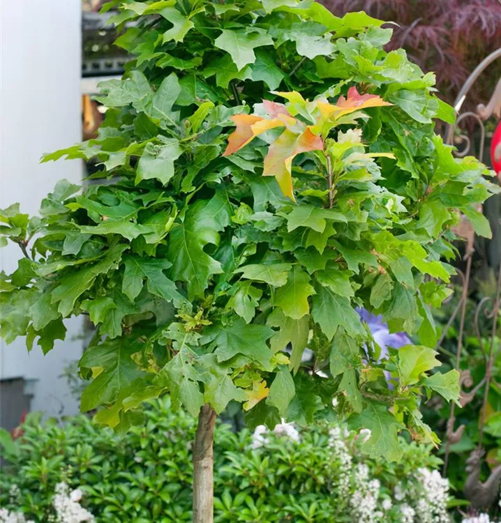 Die Sumpf-Eiche (Quercus palustris) ist ein kegelförmiger, lockerer Baum mit dekorativen, runden Früchten. Die Blüten erscheinen je nach Sorte in verschiedenen Farben.
