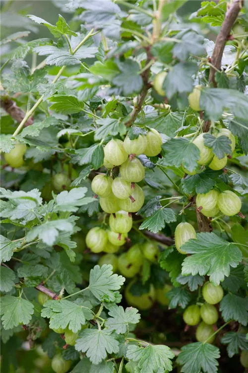Die Stachelbeere 'Invicta' (Ribes uva-crispa) bildet hellgrüne, mittelgroße Beeren. Süß-säuerlich im Geschmack, ist die Stachelbeere 'Invicta' fest und besitzt eine kaum behaarte Schale. Für eine ertragreiche Ernte ab Mitte Juli schaffen durchlässiger, lockerer, nährstoffreicher Boden und ein sonniger bis halbschattiger Standort optimale Bedingungen. Auch ihre weißen Blüten sind eine schöne Erscheinung.