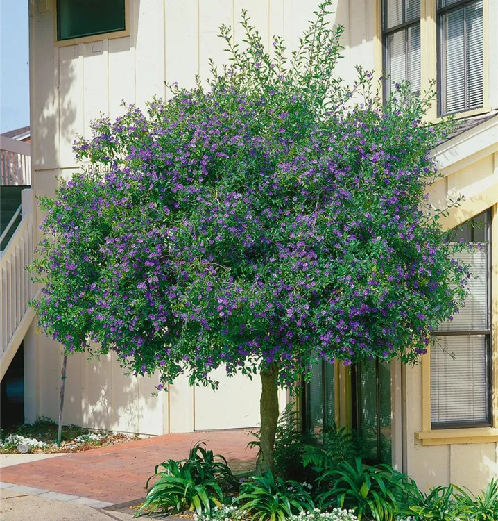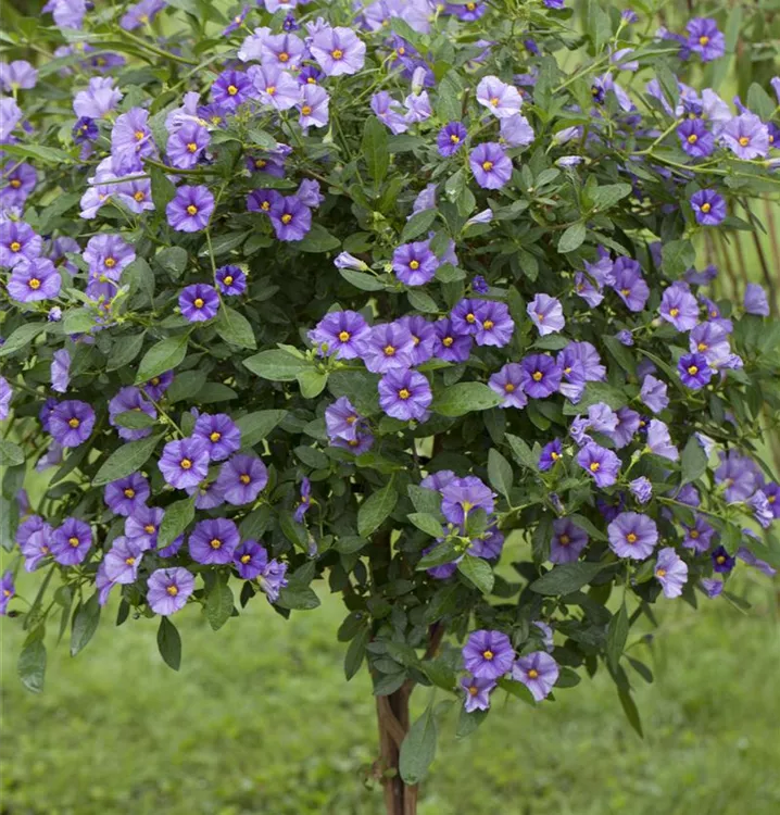 Der Enzianbaum (Solanum rantonnetii) ist eine sehr beliebte Kübelpflanze. Seine blauen Blüten sind sternförmig und erscheinen von Mai bis Oktober. Verwenden Sie bevorzugt die spezielle Kübelpflanzenerde, denn sie verdichtet sich über längere Zeit nicht.