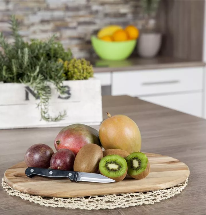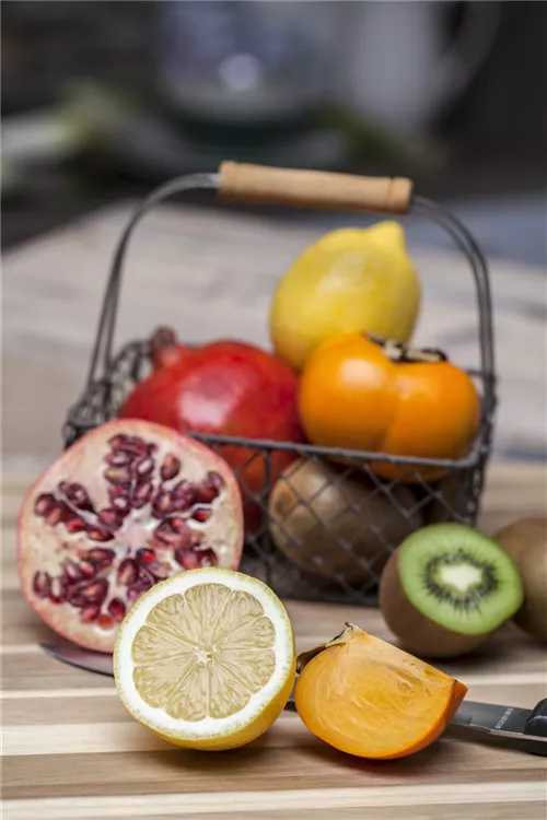 Die grünen, gelben, orangefarbenen, roten, violetten bis blauen Früchte Reifezeit ab Mai.